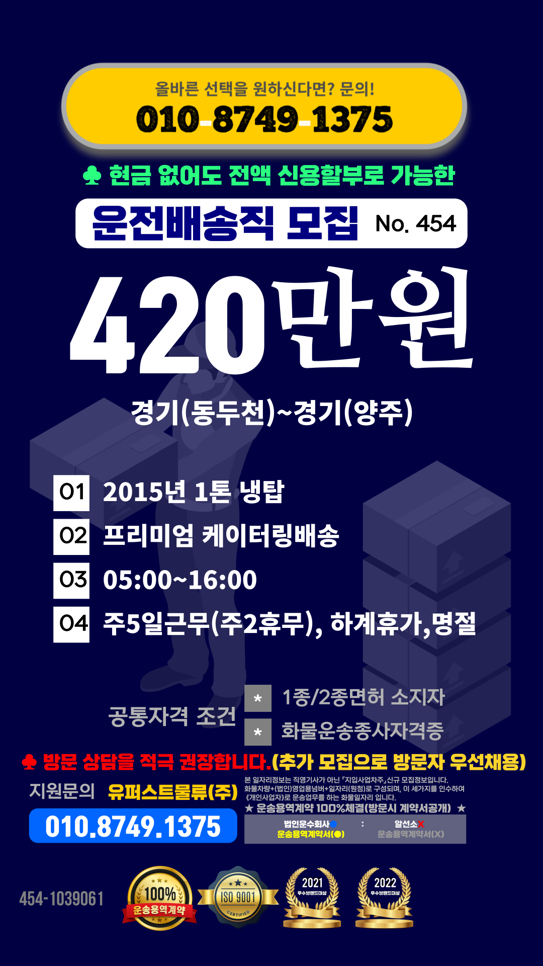 1톤정보 ★프리미엄케이터링 (05:00~16:00 / 중간휴게시간2시간보장 / 나이무관 / 오토차량가능 / 증차분) 주5일근무 (당…