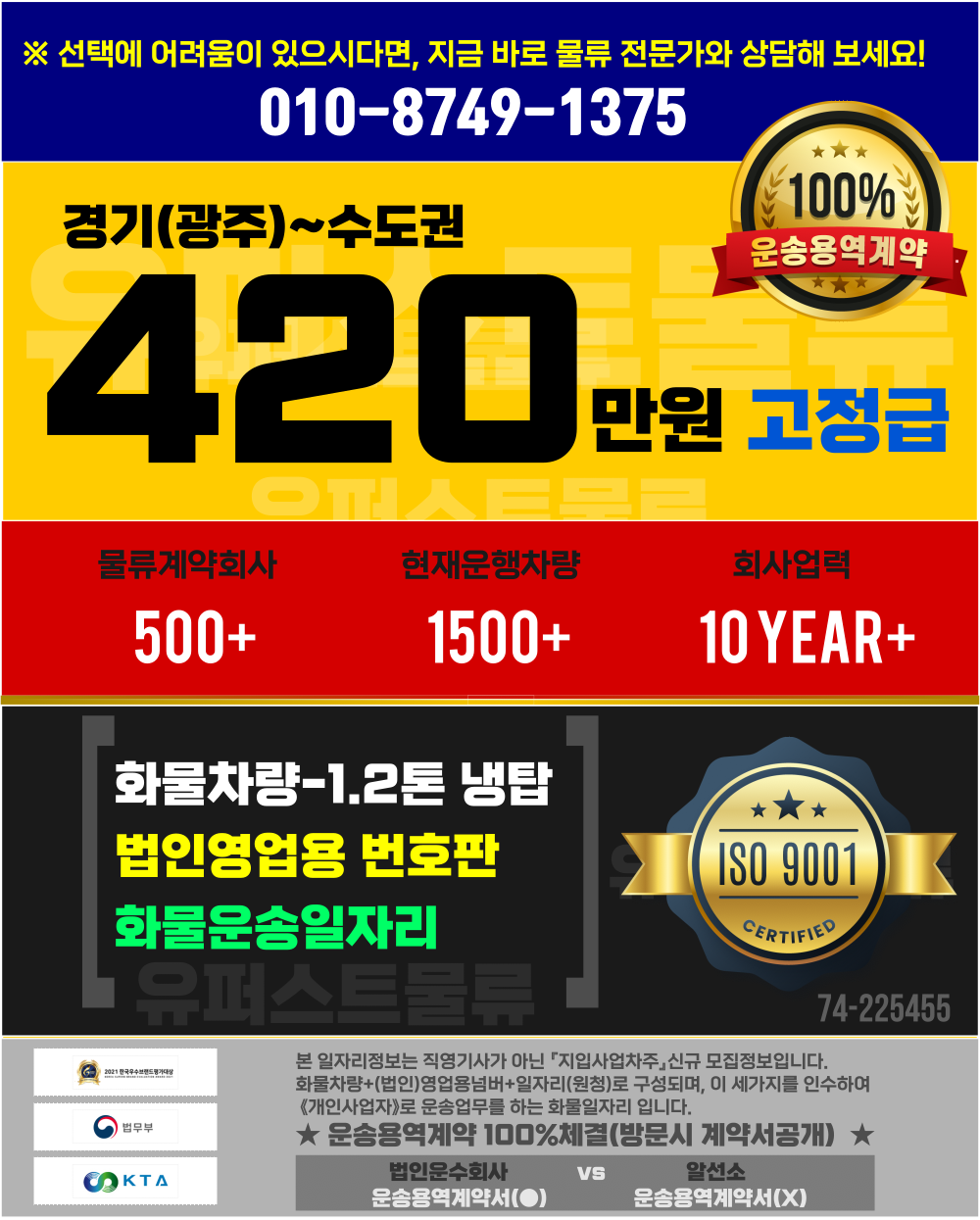 1톤정보 ★프랜차이즈물류배송 (07:00~13:00 1배송 현지퇴근 / 투잡가능 / 나이무관 / 증차분) (당사차량)