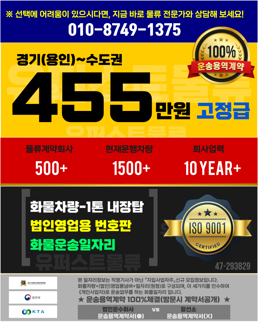 * 하루에 총 50개 미만 싣고 배송하며,1곳당 평균 3개정도 하차하면 됩니다.