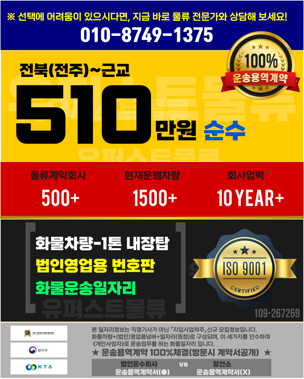 * 최소물량 80건이상 배차하여줌(계약서 명시/ 계약서 확인가능)