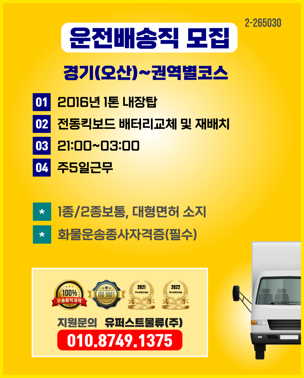 * 최소물량 80건이상 배차하여줌(계약서 명시/ 계약서 확인가능)