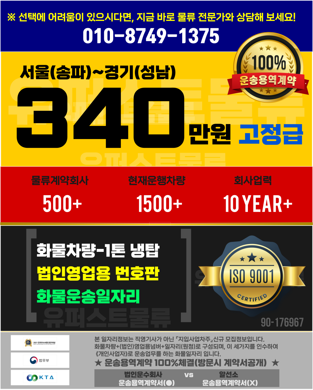 1톤정보 【서울(송파)~경기(성남)】340만원 (완제) +유보금최대24만,푸드배송,24:30~07:00 현지퇴근